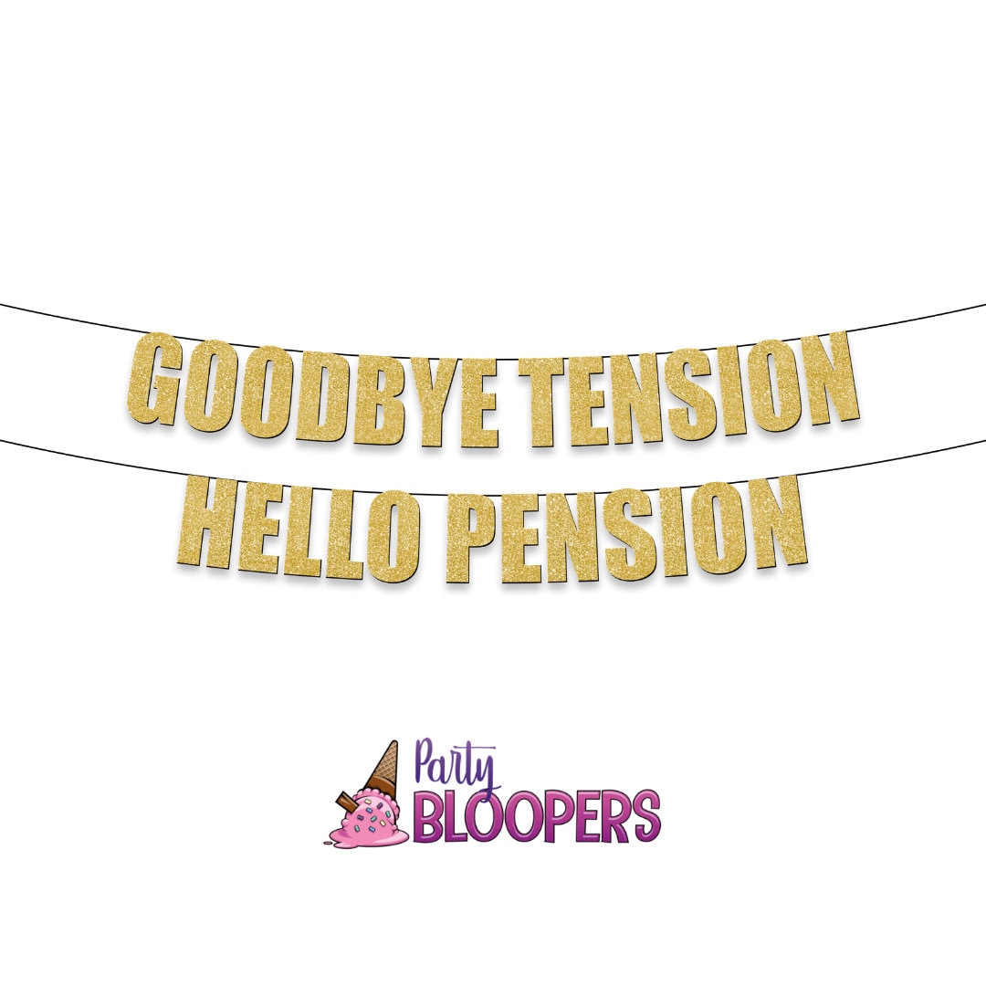 . Goodbye tension hello pension Goodbye Tension Hello Pension Gold Glitter Banner - Retirement Party Supplies Gifts and Decorations. An iPad Pro wkeyboard AirPods. 6 to 30 characters long.