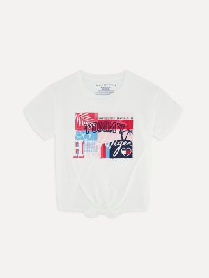 Tommy Hilfiger girls t-shirt. Visit the official Tommy Hilfiger store to discover this seasons styles and designs for kids. Made from stretch cotton our tees are soft comfortable layers.